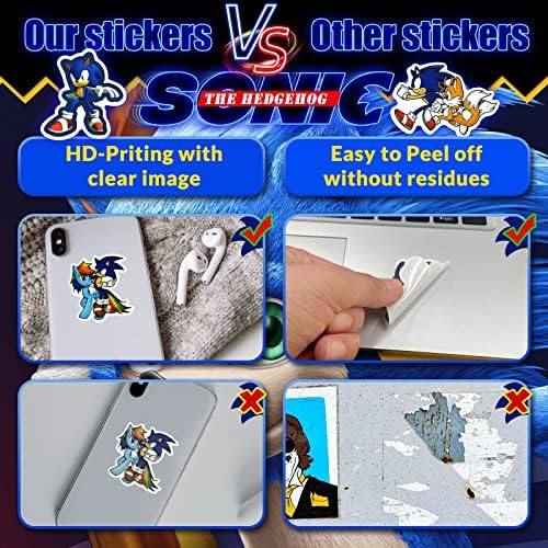 💎【100 PCS Sonic Stickers】:Sonic The Hedgehog Sticker with no repeat pattern, suitable for laptop, computer, notebook, keyboard, notebook, scrapbook, water bottles, cup, water mugs, phone case, macbook, bike, bedroom, bicycles, travel case, etc. Best gift for adults, kids, teens to DIY decoration. 💎【Reusable Stickers for Decor】:Made of vinyl waterproof material,it has good waterproof properties and can be used indoors and outdoors.The adhesive works very well,hard to peel and coming off.If you want reposition the stickers,you can easily tear it off without leaving traces on your items. 💎【Vibrant Color of Sonic Stickers 】:The color and shine of the sonic stickers are great.These vinyl stickers are printed in high-definition, the paper thickness is moderate, the image is clear, and the colors are bright.According to the reasonable tailoring of each different pattern,keep the most perfect sticker pattern. 💎【Creative Design, Wise Christmas Choice】:Every sticker has excellent artistry, many of the stickers featured sonic game stickers,the variety and all 100 sonic stickers are different, no repeat prints.The art and designs offer great quality.All the different colorful characters stickers are thick and glossy.There are many styles to meet your different needs. 💎【Gift to kids】:These cartoon stickers will make the children happy,the stickers can be used as a gift for parents to reward children or as a teacher’s reward to students to help build positivity.