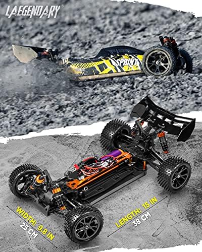 Do not stand directly behind the car while driving to avoid personal injury from rocks, sticks, or other thrown objects, especially during full throttle starts. Keep any spectators and animals at a safe distance. Wearing eye protection is recommended. User Manual Update: Scroll down to “Technical Specification” section on this page to download the most recent User Manual. It contains important information Hobby Grade Brushless Motor: With a strong 3650 brushless electric motor, our RTR rc trucks 4×4 offroad waterproof come fully assembled. The brushless motor has increased power-handling capabilities, longer lifetime and lower power consumption (longer battery life) than a brushed motor. It can reach high speeds of up to 40 mph (65km/h) Customize and Outrun the Competition: Equipped with a programmable 45A brushless ESC, a 2S LiPo 3250mAh 25C rechargeable battery and charger, a battery fireproof bag, and a double battery connector, our remote control cars for boys, girls and adults can run for up to 30 minutes (with 2 batteries). Regular and upgraded parts are readily available to take your RC game to the next level IPX5 Level Water-resistant: Our 4 wd hobby grade rc car can be driven through snow or puddles, take splashes of water from different directions, but it cannot be fully submerged. It boasts extraordinary grip, operation, and durability. The oil filled metal shocks and 3KG high torque servo allow you to drive the Sprint in all terrains like beach, sand, rock or concrete road Maneuverability at its Finest: The 1:10 scale truck is designed both for entry level and intermediate level users. Thanks to the easy-to-use pistol-like 4CH 2.4GHz remote controller with 2 speed modes (low speed mode for learning and smaller areas and high speed mode for racing and larger areas), our fast rc cars for adults and kids can be easily controlled within a range up to 328 feet Perfect Birthday or Any Occasion Gift: If you are looking for an exciting and extra cool present, then you will love our radio controlled cars. You can race two or more rc off road cars at the same time, with no interference. Simply pair the first truck with its remote and drive it, then repeat the same step for the second one. Racing with your family or friends is always exciting and everyone can join in the Laegendary fun