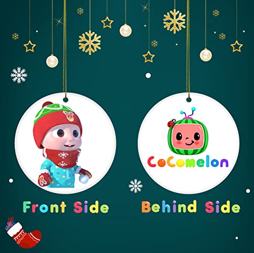 🌟【Best Wishes for Christmas】Exquisite and lovely patterns, special elements, let us remember the difficult time that passed this year. At the same time, it also indicates happiness in the future. 😊【Wide Application】Including a gold loop wire,the ornaments for Christmas trees can be hung on Christmas tree,corridors,living rooms,bedrooms,stairs,fireplace,doors, windows or walls,refrigerators,car,around banister.Cocomelon Christmas decor add a festival charm. ⛄【Perfect size】Cocomelon christmas ornament in diameter 7.6cm. 100% unique for absolute perfection. Loop design is perfect to hang on the Christmas tree. Package includes: 1pc x Double Side Cocomelon ornaments 2021 with golden ribbon