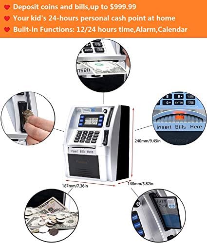 2021 Upgraded-ATM Savings Piggy Bank Machine for Real Money for Kids with Debit Card, Bill Feeder, Coin Recognition, Balance Calculator, Digital Electronic Safe Box
