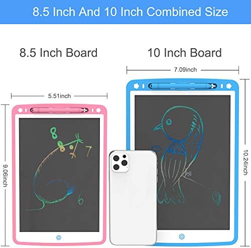 2 Pack (10” Blue and 8.5” Pink) drawing LCD writing tablet is ideal gifts for boys and girls. 2pack suitable for one or more kids painting, graffiti, writing, learning, draw a chart, and so on; or used for different scenes like school and home, also suitable for adult to take notes, leave message at home or office.