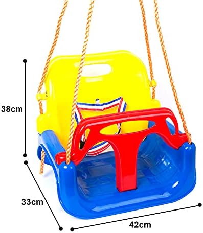 [ 3 In 1 Design ] – The Swing Adopts 3-In-1 Design For Different Ages From Toddler To Teen, Detached As 3 Kinds Of Seats, Great Playground Accessory For Infant Toddler Children And Adult, Up To 300 Pounds, It Can Be Used Indoor Outdoor Or Hanging In The Tree Branch Or a Beam [ Double Safe Design ] – Front t Bar Guard And The Back (Which Has a Safety Belt Attached) Ensure Your Kids Safe.The Special Design Of The Buckle For Nylon Rope Protects The Swing From Tipping, An Additional Device For Fixing Ropes On The Back To Protect Swing Set From Twisting, Tipping, Or Rolling [ Adjustable Height ] – The Nylon Rope For The Swing Is Fully Adjustable. It Can Be Adjusted To Any Heights You Need [ Easy To Assemble ] – Easy To Install, This Detachable Swing Is Combined By Snaps And Screws, Includes Everything You Need For Assembly And Installation, Don’t Worry About The Swing Twisting, Tipping Or Rolling [ Durable & Long To Use ] – The Swing Seat Is Made Of High Quality Plastic Which Guarantees Years Of Swinging.Minimum Age Recommended: 6 Months Old