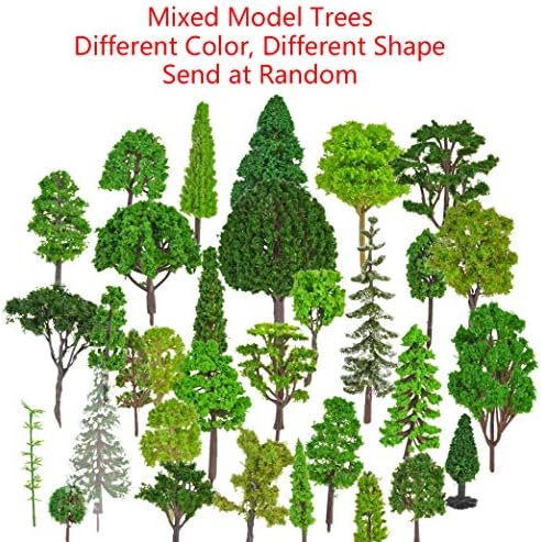 Package Includes About 30pcs Model Train Railroad Scenery Architecture Trees Note There maybe some debris generated during the producing process, please besure not to let it get on your clothes. HIGH QUALITY MATERIAL:Model train trees are made of high quality plastic material and metal, looks realistic and beautiful, durable in use that you can use them for a long time. DIFFERENT SIZE:This is a mixed size of model trees come with 1.5-7.9 inch(4 -20cm), you can choose the suitable and proper size to decor your building model, sand table model, train model, toy model, scene layout or mini outdoor landscape. DIFFERENT TYPES:There are several types of mode trees in each package, about 30pc of different type of mode tree, train model tree, sand table model tree(as shown in the picture). Please kind know that the type and quantity of each type are send at random. WIDE APPLICATION:These mixed mode and size tree can be used as a decoration for sand table model, building model, train model, mini outdoor landscape model or some other kind of things. It can also be used as a birthday gift for your colleague, friend, classmates or family. WARM NOTICE:There maybe some debris generated during the producing process, it’s normal and won’t affect using, please besure not to let it get on your clothes when you are doing with your artcraft.