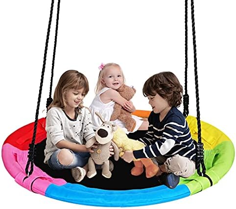 LARGE tree swing with 40″ circle swing seat, 1.5MM steel frame, tight 4 stands braided rope, safe up to 400lbs.
