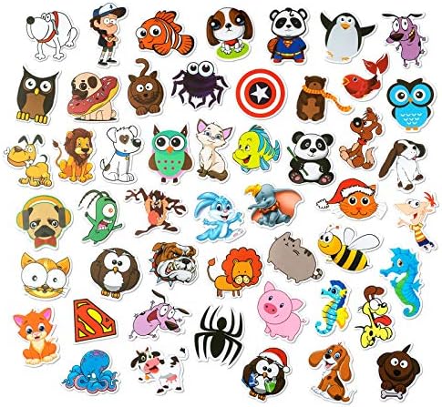 Price: (as of – Details) Product Description Number of stickers 25Pcs 25Pcs 50Pcs 50Pcs 25Pcs Waterproof Waterproof Waterproof Waterproof Waterproof Waterproof Weight of stickers 0.5oz 0.5oz 0.95oz 0.95oz 0.5oz What’s in the pack? · 50 PCS Cute Cartoon Animal stickers without duplication. Where you can use? · Mug, Water Bottle, Laptop, Luggage, Pad, Cellphone, Skateboard,