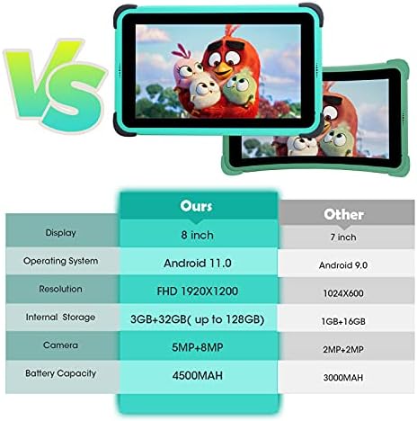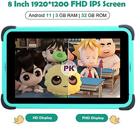 8 inch Kids Tablet Android 11.0 Tablets for Kids, 1920×1200 IPS FHD Display, 3GB RAM 32GB ROM Child Tablet with Parental Control, 5+8MP Camera,WiFi, with Kids-Tablet Case and Stand(Green)
