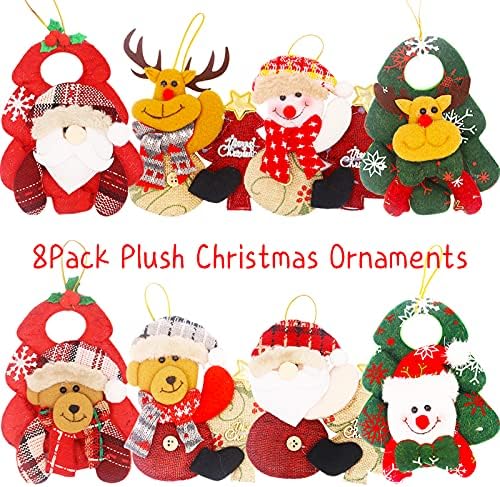 8pcs Plush Christmas Tree Decorations Ornaments Set – Xmas Plush Ornaments Santa Claus Snowman Elk Bear for Holiday Christmas Tree Fireplace Home Decorations