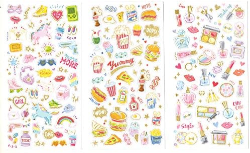 Price: (as of – Details) This set contains 9 pack different design stickers which made from high quality PVC and gold dust, can be attached to the surface of the stationery, toys, furniture, books, cell phones and anywhere you like. Package contain: 9 pack different pattern stickersSize: 3.5×7 inchesThese stickers contains unicorns, shoes rainbows drinks