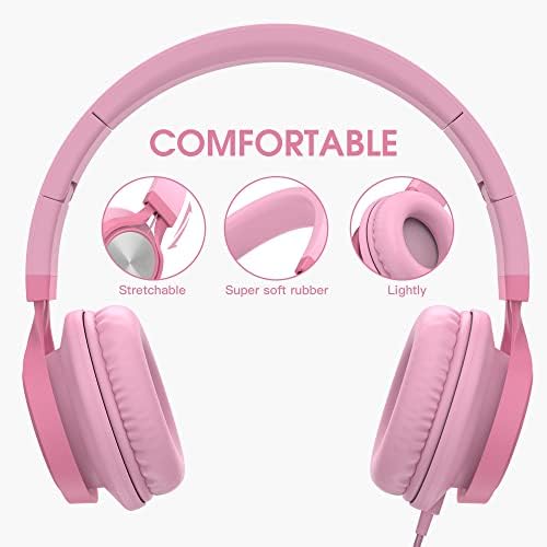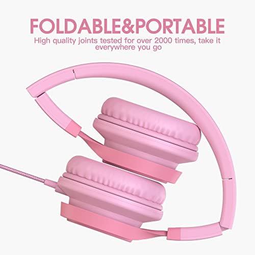 AILIHEN C8 Girls Wired Headphones with Microphone and Volume Control Folding Lightweight Headset for Cellphones Tablets Smartphones Chromebook Laptop Computer PC Mp3/4 (Pink)