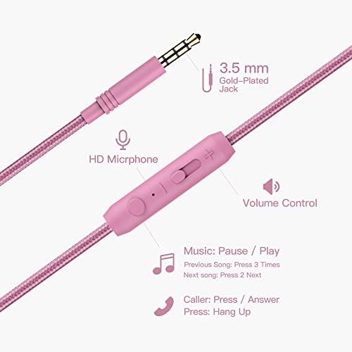Collapsible Feature: Take your wired headphones wherever you go. Just fold them up, twist up the cord, and be on your merry way Hands-free Talking and Volume Control: The built-in mic,remote and volume control lets you pick up calls and skip between tracks without missing a beat. Adjustable Hinge: The adjustable headband gives your headphones some impressive flexibility so they can adapt to the shape of your head for a perfect fit. Noise Isolation: full-sized, on-ear construction isolates from outside noise so you can hear the deep bass, and crisp mids and highs of your upcoming track. Widely Compatible: with a flexible and durable 47 inches braided cord and sturdy 3. 5 mm stereo Plug. Will not kink, twist or break under normal use. Use with all your favorite devices like cellphones, laptop, computer, Chromebook, MP3, MP4 and other Audio devices