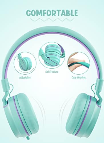 AILIHEN I35 Kid Headphones with Microphone Volume Limited 85dB Children Girls Boys Teen Lightweight Foldable Wired Headset for School Online Course Chromebook Cellphones Tablets (Green Purple)