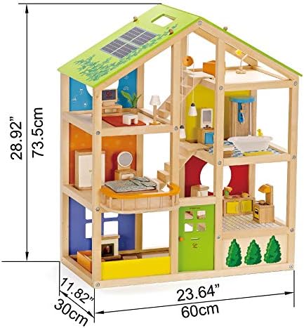 Price: (as of – Details) Hape’s All Season Doll House (furnished) is a beautifully designed dollhouse sure to provide your child with endless inspiration to role play and imagination various domestic situations for their doll family.PERFECT ROLEPLAY DOLLHOUSE: A classic 3 story wood dollhouse that encourages imaginative roleplay with friends.ROOM FEATURES: This dollhouse for kids
