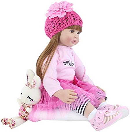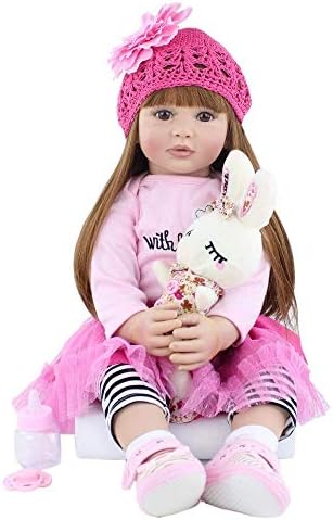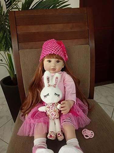 Angelbaby Adorable Reborn Toddler Doll Soft Body Real Life Long Hair Princess Hair, 24inch Handmade Silicone Reborn Baby Doll Sets and Doll Clothes (Pink -2006)