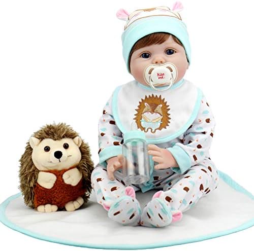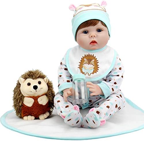 ❤Reborn baby is 22 inches/55cm from head to toe,with soft weighted body for a real baby feel,kids can hand him to everywhere.Baby doll can fit into newborn size(0-3months) baby clothes. ❤Reborn baby has a realistic looking.Hand applied blue eyes,handmade beautiful brown wig hair.the arms and legs could be moved and poseable.Real looking expression will make your kids feel like playing with friends. ❤The baby dolls is a great choice for kids’ birthday present,Christmas gift,preschool and home activity,role playing and nuturing play.The reborn doll is also a good choice for granma’s accompany and collectors collection. ❤The doll’s head,3/4 vinyl arms and 3/4 vinyl legs,conforms to the safety requirements of ASTM F963 and EN71 for ages 3+,which is safe to your children. ❤Package includes:Reborn doll*1,Suits of hedgehog *1(just like picture),Plush hedgehog *1,Bib *1,Blanket *1,Magnet pacifier *1,Bottle *1,Birth certificate*1.