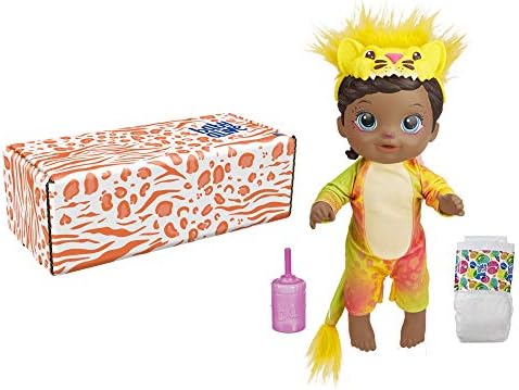 Baby Alive and all related properties are trademarks of Hasbro. COOLEST KITTY IN THE JUNGLE: Kids can imagine exciting adventures with this adorable Baby Alive Rainbow Wildcats baby doll! She even has lion-inspired facial decoration! REMOVABLE LION ONESIE AND HEADBAND: Features wild kitty-themed doll accessories including a colorful, lion-style onesie, plastic lion headband and matching bottle DOLL THAT DRINKS AND WETS: After she drinks, this kitty is going to need a diaper! That’s because this Baby Alive Rainbow Wildcats doll “pees,” like a baby! (Additional diapers sold separately.) TOY FOR KIDS AGES 3 AND UP: A fantastic gift for kids, this Baby Alive Rainbow Wildcats doll provides bottle feeding, changing and make-believe fun! It’s a great lion-themed toy for girls and boys! COMPLETE THE COLLECTION: Look for all of the Baby Alive Rainbow Wildcats dolls including the Lion, Tiger and Leopard! (Each doll sold separately. Subject to availability.)