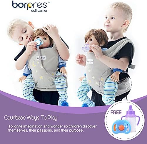 Baby-Doll-Carrier BORPRES for Kids Little Girls, with Feeding Toy Play Set for Baby Dolls, Comfortable and Safe Design,Premium Durable Cotton-Grey