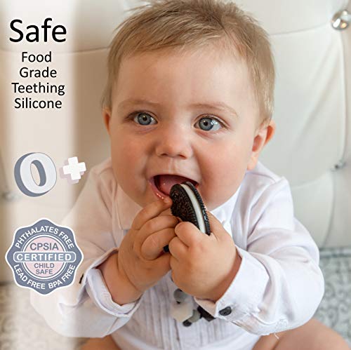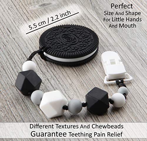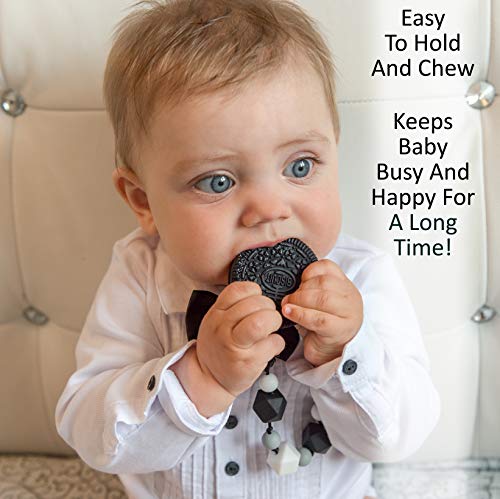 Baby Teething Toys BPA Free Silicone – Very Cute and Highly Effective Pain Relief Cookie Teether Toy with Pacifier Clip – Best for Stylish Boy or Girl, Baby Shower Gift, Babies 6-12 Months Teethers