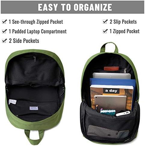 ✔FASHION DESIGN: The Vaschy daily backpack is made of high quality water resistant lightweight Polyester and Smooth SBS zipper.The fashion design features a color-block medium sized shape with a pocket to hold your 15″ MacBook and iPad, a large main compartment to hold books and bulky items,double zippers to the main compartment. ✔COMFORTABLE:The school backpack hangs nicely and comfortably on your back and shoulders with its air mesh breathable padded straps. You can organize your stuffs with the differently sized pockets. There is plenty of room for your keys, cellphone, wallet, etc. The padded laptop compartment fits your device snugly while the main compartment is best for holding heavy textbooks for college students.It is a true space saver and a hand-free fashion backpack. ✔EASY TO ORGANIZE: The fashion backpack’s main compartment is with zipped closure,water-bottle pockets on both sides, Padded sleeve for fits up to 15.6 inch laptop,1 zipped pocket,1 mesh pocket,1 outer pocket with mesh pocket inside,adjustable air mesh padded Reinforced Strap ,Super comfortable breathable back panels. ✔DIMENSION: 45x30x12cm/17.7×11.8×4.7″(LxWxH);Laptop Sleeve: 29.5x27cm/11.6.×10.6’’(WxH),Water Bottle Pocket:11×17.5cm/4.3×6.9’’(WxH),Capacity: 16.2L.Weights:0.6KG/1.36LB ✔SCHOOL BACKPACK:The Vaschy laptop backpack is a heavy-duty backpack suitable for those who like casual. The unique design is a fashion statement.Its durable material is recommended for college and highschool students often bringing their college textbooks and notebooks. Shoppers similarly will find comfort with the use of this backpack for their regular grocery shopping.