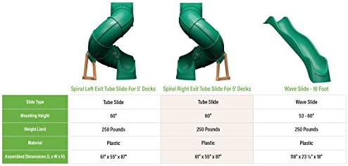 Price: (as of – Details) Bring virtually any swing set back to life with the Backyard Discovery Spiral Tube Slide. Designed to hold 250lbs and compatible with most swing sets with a 5ft deck height, this slide will add extra fun and excitement to your swing set. Support lumber and brackets included. UV protected with