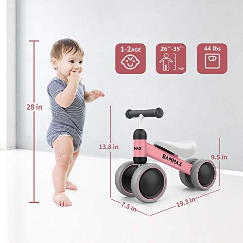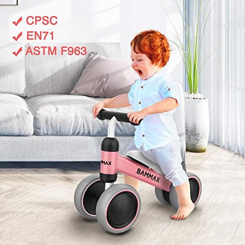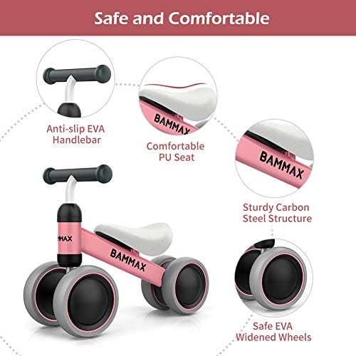 Bammax Baby Balance Bike, Baby Bicycle for 1 Year Old, Riding Toys for 1 Year Old, No Pedal Infant 4 Wheels Baby Walker First Birthday Gift Toddler Bike for 9-24 Months Boys Girls, Kids First Bike