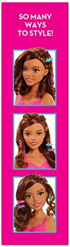 Price: (as of – Details) The Barbie Fashionistas Styling head is full of styling fun! Barbie’s thick flowing hair is perfect for brushing, twisting, and pinning into trendy designs! Use the cute barrettes and hair ties to give Barbie a fancy up-do. For a more polished look, brush Barbie’s hair back with the cute pink