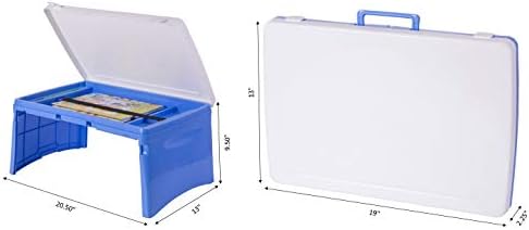 Size: 20. 5″ W x 9. 5″ H x 13″ D Foldable option makes it perfect to use on long car trips, in bed, at home, on the couch, or in the backyard This lap desk is made with highly sturdy plastic, suitable for kids Great to do homework, or for use as a breakfast or activity tray Top lifting feature for extra storage