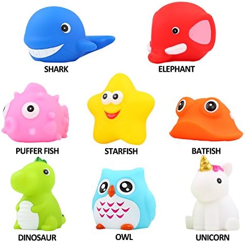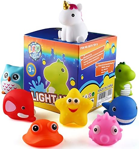 Bath toy, can light up automatically when you put them in the water. Flashing brightly and slowly that your kids loves to playing with them during bath time Pool toy, including 8 different style animal, Batteries are included and installed. Battery life normally over 3 months and up. (depending on use) Fun floating characters – Each waterproof rubber animal floats in any type of water, great for bathtubs, fish tank or swimming pools Using this tub toy you can make your child kid boys and girl have fun by himself in a bathroom while you’re enjoying time for yourself. Perfect size toy for babies Infants Toddler little hands to hold; 6 Months+, Great for bath party favors, gift, learning education or improve coordination imaginative skills.