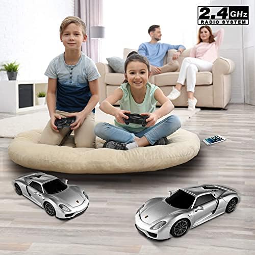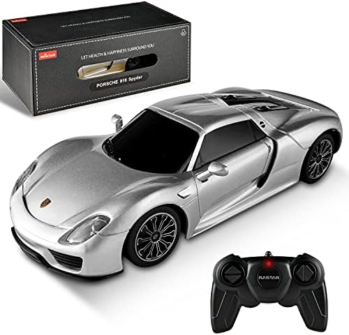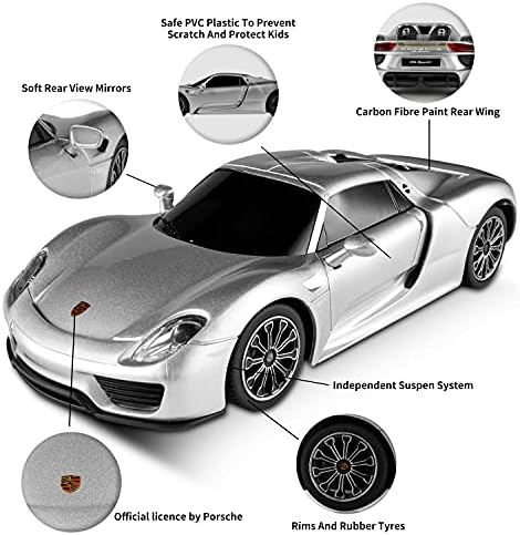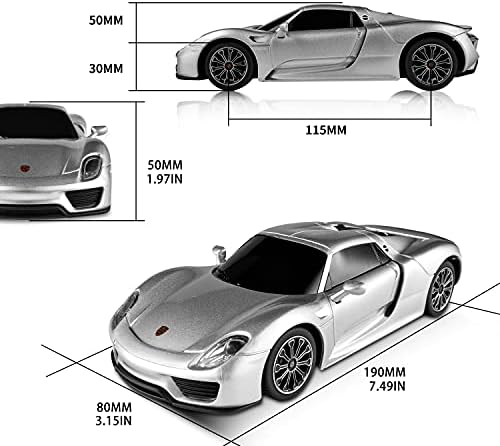 【OFFICIALLY LICENSED BY PORSCHE】1/24 reduced the real Porsche 918 Spyder; the size of the model Porsche is 7.56 x 3.58 x 2.01 inches. We carefully craft and design every product, and every product we sell undergoes a rigorous testing process before it can land in your hands. 【STABLE PERFORMANCE】In order to bring a better gaming experience, the front and rear wheels of the Porsche remote control car have a built-in spring suspension system to simulate the driving effect of a real car, reduce the collision damage of internal electronic equipment, provide stable running performance, and make the car run smoothly and have a longer life. 【SAFE AND RELIABLE QUALITY】This remote control car is made of environmentally friendly, non-toxic, high-quality ABS plastic material. It can maintain good condition in multiple collisions and is absolutely safe for children. The rounded edges protect children from scratches, allowing you to fully enjoy every exciting driving Experience. 【EXPERIENCE ULTIMATE CONTROL】The 2.4GHz frequency non-interference remote control makes the car ready to run at any time; the sensitive steering adjustment switch is easy to operate, has the functions of adjusting the remote control car forward, backward, left and right turns; 4 mph speed and 50 feet of control range, Provide a stable and wider control range for the game. 【BEST PERFECT GIFT FOR KIDS】The Porsche toy remote control car set includes: 1* Porsche remote control car, 1* remote control, 1* user manual. The batteries required for the car and remote control are not included. This remote control car is easy to operate and has a smooth design. It is the best car gift for children’s birthday, Christmas and other holidays.