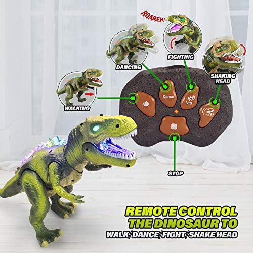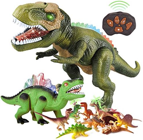 Price: (as of – Details) Product Description Remote Control Dinosaur Toy Pack A Bag of 9 Dinosaur Figures Included Take a Jurassic Adventure Tour The bonus small dinosaur figures included are waiting for your toddlers’ exploration, including Tyrannosaurus, Pterosaur, Stegosaurus, Pterodactyl, Spinosaurus, Tyrannosaurus, Velociraptor and Ox dragon. Both boys and girls love the mystery and