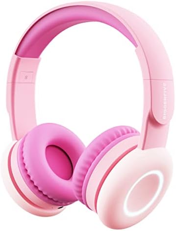 【2021 NEW WIRELESS KIDS HEADPHONES】 Brand new, stylish, and unique BIGGERFIVE 2-in-1 wireless and wired on ear kids headphones bring kids premium stereo audio quality, clear mic talk, vivid 7 colorful LED lights and long battery life. Make kids’ long trip, flight, online class, homework, watching cartoon or movies and listenning music more colorful and interesting. Let kids love what they listen to. 【SOFTER & MORE COMFORTABLE】Soft silicone outer-layer, light and cozy foam ear cushions, soft PU earpads cover and foam cushioned on headband ensure direct touch between kids and headphones soft and safe. Adjustable headband fits for growing kids to ensure maximum comfort. Desinged for kids, one button controls play, pause and end and answer phone calls. 【50HRS PLAYTIME & USB-C CHARGING & PORTABLE】21hours playtime of non-stop playtime in wireless LED flashing mode is extended to 50 hours playtime of non-stop playtime or calltime in wireless non-LED mode. A single charge gives 100 hours standby time. Foldable design with ergonomic headband is portable for travel, flight, and train. 【VOLUME LIMIT & HEARING PROTECTION FOR KIDS】Limit audio volume between 85 and 94dB using combination key so the volume switch will not be accidentally touched. 94dB is defaulted. There is no need of worry about children’s hearing damage, even if without parental accompanying and surveillance. Let your kids love what they’re listening to, at a safe volume for different environments or tasks. 【STABLE WIRELESS CONNECTION & WIDE COMPATIBILITY】Wireless kids headset adapts BT 5.0 connectivity to ensure stable connection with long working range of up to 33 feet (10m). Use with all your favorite devices like cellphones(compatible with iPhone’s siri), tablets, laptop, computer, Chromebook, MP3, MP4 and other Audio devices