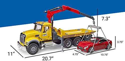 PRODUCT DIMENSIONS: MACK Truck: 20.7 x 11 x 7.3 in. Bruder Roadster: 10.75 x 4.75 x 3.75 in.