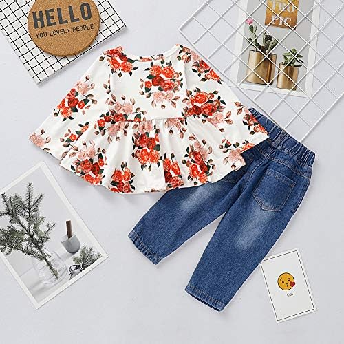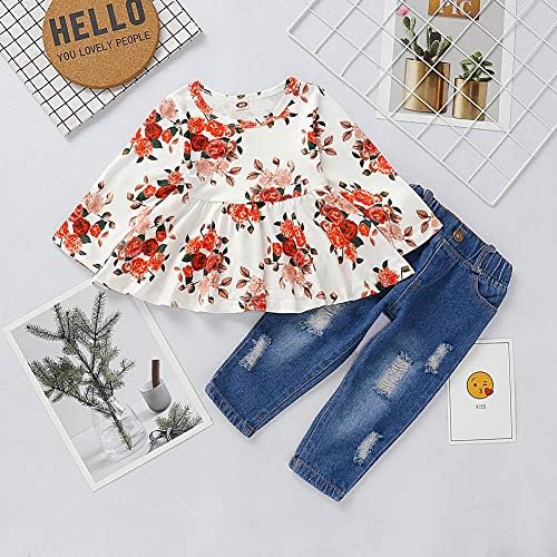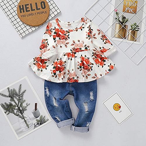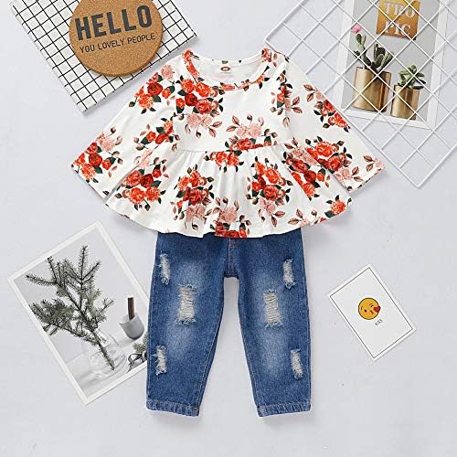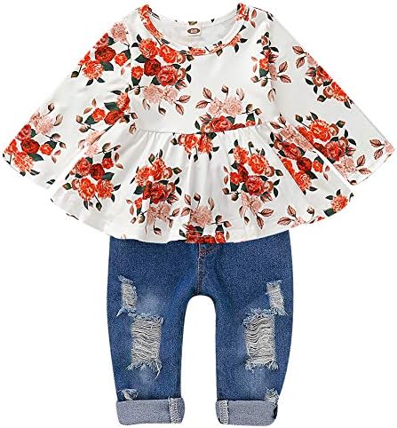 ✿ FASHION DESIGN: Ruffle and floral print top design with ripped jeans, cute and fashionable. We are sure your little girl will loves this Floral Pant Set and she won’t want to take it off. ✿ SEASON: For All Seasons, Perfect for daily wear, holidays, birthdays, Casual, parties, Baby Photo, Unique and Attractive. ✿ SIZE: For Toddler Infant Kids outfits baby girls 12-18M, 18-24M, 2-3T, 3-4T. ✿ GREAT GIFT: Perfect Gift for Easter, Birthday Party, Christening, ect. Best Gift for your little Princess, worth having.