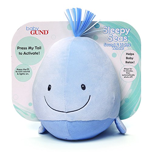 Baby GUND Sleepy Seas Lights and Soothing Sounds Whale Stuffed Animal Plush Toy, Blue, 7″