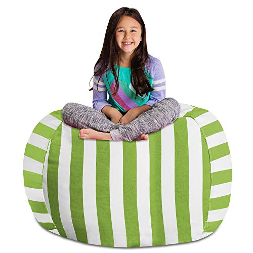 Posh Stuffable Kids Stuffed Animal Storage Bean Bag Chair Cover – Childrens Toy Organizer, X-Large 48″ – Canvas Stripes Green and White