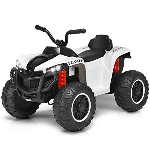 Costzon Kids Ride On ATV, 4 Wheels ATV Quad with Spring Suspension, Electric Toy, Kids Ride On Car with Headlights, Music and Story, 12V Battery Powered, Adjustable Volume (White)
