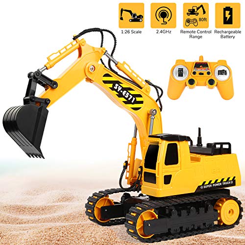 RACPNEL Remote Control Excavator Toys 1/26 RC Excavator, 2.4GHz Fully Functional Construction Vehicles Toys Truck with Rechargeable Battery, Birthday Gift for Boys and Girls, Kids