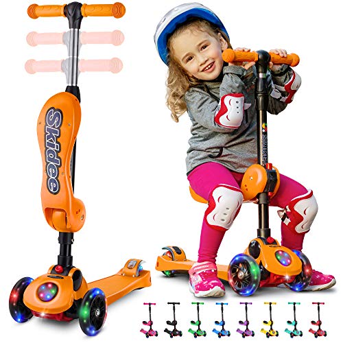 2-in-1 Scooter for Kids with Folding Removable Seat Zero Assembly – Adjustable Height Kick Scooter for Toddlers Girls & Boys 2-12 Years-Old – Fun Outdoor Toys for Kids Fitness 3 LED Flashing Wheels
