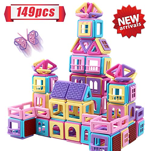 HOMOFY 117PCS Castle Magnetic Blocks for Boys Girls Kids -3D Macaron Colors Learning & Development Building Blocks Toys for 3 4 5 6 7 Year Old Boys Girls Gifts