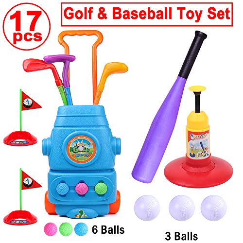 HanShe 17pcs Golf Baseball Set Toddler Golf Toy Kids Golf Club Set Baseball Set T-Ball Set TotSports Easy Score Baseball Set Outdoor Toy Lawn Game Birthday Gift