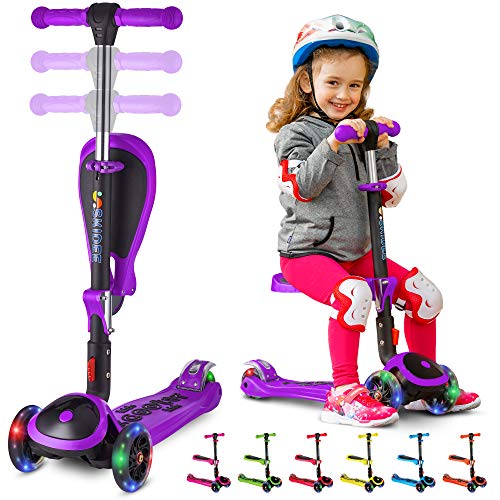 Scooter For Kids with Folding Seat – 2-in-1 Adjustable 3 Wheel Kick Scooter for Toddlers Girls & Boys – Fun Outdoor Toys for Kids Fitness, Outside Games, Kid Activities – Y200 (Purple, Scooter)