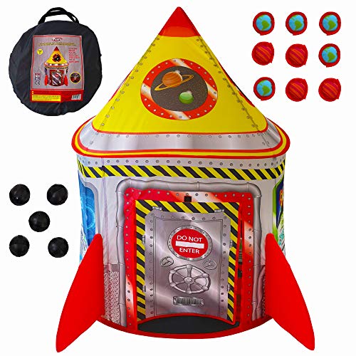 Playz 5-in-1 Rocket Ship Play Tent for Kids with Dart Board, Tic Tac Toe, Maze Game, & Immersive Floor – Indoor & Outdoor Popup Playhouse Set for Toddler, Baby, & Children Birthday Gifts