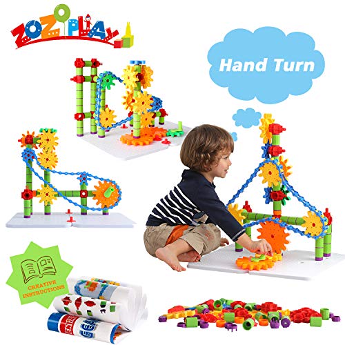 ZoZoplay STEM Toys Gears Building Set, 170 Pieces Learning Blocks, Spinning Gears Interlocking Chain, Connector Pieces and 2 Pegboards, Best Gift for Boys and Girls Ages 3 4 5 6 Years Old