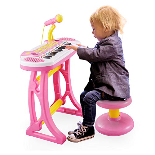 Reditmo 31 Keys Kids Piano Keyboard, Educational Toy Electronic Organ, with Microphone and Firmer Stool, for 18M+ 2-6 Year Old Children, Baby, Toddlers, Birthday, Pink