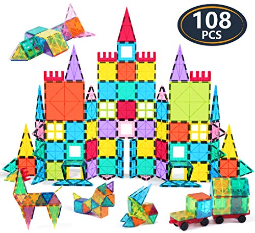 Jasonwell 108pcs Magnetic Blocks Kids Magnetic Tile Building Blocks Set 3D Magnet Bulding Tiles Construction Playboard Magnet Tiles Educational Toys Gift for Toddler Boys Girls 3 4 5 6 7 8 10 Year Old