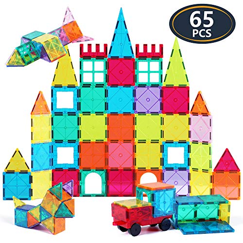 Jasonwell 65 PCS Magnetic Tiles Building Blocks Set for Boys Girls Preschool Educational Construction Kit Magnet Stacking Toys for Kids Toddlers Children 3 4 5 6 7 8 Year Old