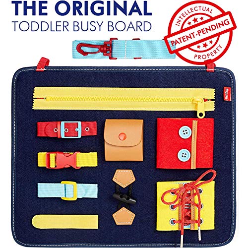 Toddler Busy Board – Montessori Basic Skills Activity Board for Fine Motor Skills and Learn to Dress – Educational Learning Toys for 1 2 3 4 Year Old Toddlers – Sensory Toy for Airplane or Car Travel