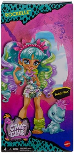 Discover the world of Cave Club, a land of exploration, adventure and even dinosaurs! A dino-whisperer by nature and one of the first dino-riders ever, Rockelle knows and loves everything about dinosaurs. Imaginations can embark on all kinds of adventures with Rockelle doll, her adorable “plush” dinosaur Teddy-Rex and two storytelling pieces -her glittery scrapbook holds a treasured dino “artifact,” and a comb accessory sparks styling fun. Available exclusively online, this set includes a neon-bright hair extension accessory that kids can use to create bold new looks! Kids aged 4 years and older can play out adventures with their favorite cave kid or collect them all to make history with the whole crew. Each sold separately, subject to availability. Doll cannot stand alone. Colors and decorations may vary. Item arrives in frustration-free, easy-to-open packaging that’s 100% recyclable. For a gift-ready box, select “Ship in Amazon packaging” at checkout Meet the Cave Club -a prehistoric group of fearless friends who are way ahead of their time! Born with the magical ability to communicate with dinosaurs, Rockelle is one of the first dino-riders ever! Cave Club Rockelle doll is ready for any adventure in a colorful animal-print romper and matching epaulets Includes her adorable “plush” dinosaur Teddy-Rex, plus a comb accessory and a scrapbook that holds a cool dino “artifact.” Kids can create bold new looks with a neon-bright hair extension accessory, available exclusively online Transport imaginations to the dawn of time with Cave Club dolls and toys! Kids aged 4 years and up can collect them all to complete the club