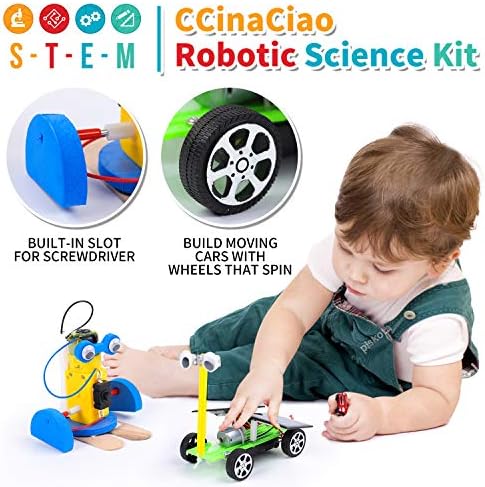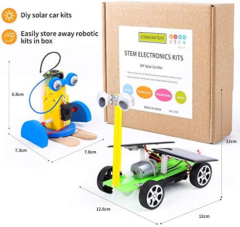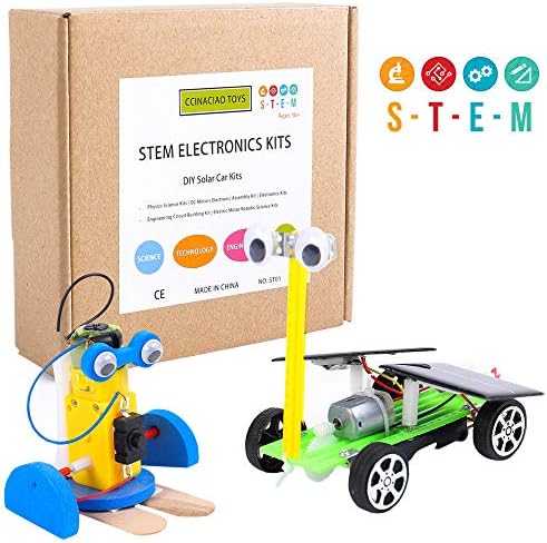 CCinaCiao Robotic Science Kits for Kids, DC Motors Electronic Assembly Kit, DIY Solar Car Kits, STEM Kits for Boys and Girls, Kids Science Experiment Kits(2 Kits)