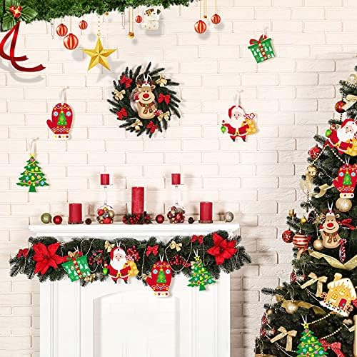 Christmas Craft Kit for Kids Christmas Tree Ornaments Hanging Art and Craft DIY Project Gingerbread House Crafts Kit Christmas Present Box Claus Reindeer Christmas Crafts for Kids, 6 Styles (24)