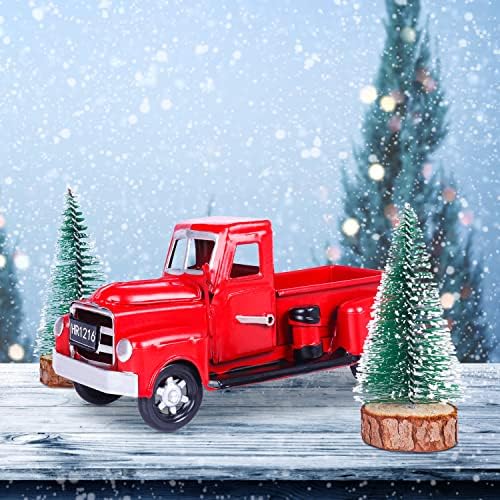 The package includes: 1pcs handcrafted red metal truck + 2pcs Christmas bottle brush trees